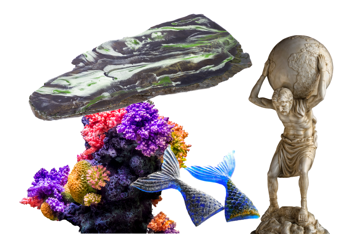 กลุ่มสินค้าตกแต่ง และงานฝีมือต่าง ๆ เช่น หินทรายเทียมสำหรับงานจัดสวน ฉากน้ำตก ฉากอควาเรี่ยม ปะการังเทียมหลากหลายชนิดที่เลียนแบบตามสีธรรมชาติ และงานรูปปั้น
