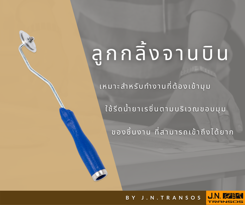 - ลูกกลิ้งจานบิน ใช้สำหรับรีดน้ำยาเรซิ่นบริเวณขอบมุมของชิ้นงานที่เข้าถึงได้ยาก เหมาะสำหรับใช้ในงานที่ต้องเข้ามุม