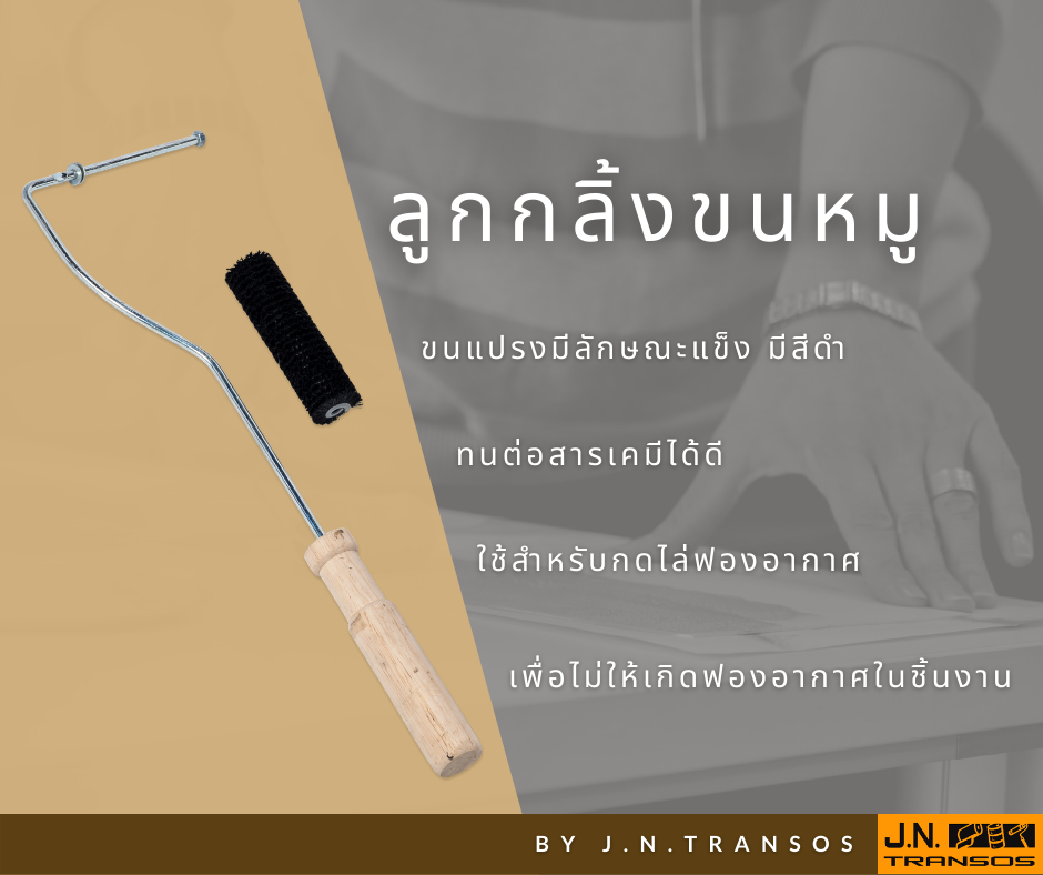 - ลูกกลิ้งขนหมู ขนแปรงมีลักษณะแข็ง มีสีดำ สามารถทนต่อสารเคมีได้ดี เหมาะสำหรับไล่ฟองอากาศในชิ้นงานที่เกิดจากเรซิ่น หรือสภาพอากาศ โดยจะใช้งานหลังจากที่ใช้ลูกกลิ้งขนแกะลงน้ำยาเรซิ่นเรียบร้อยแล้ว