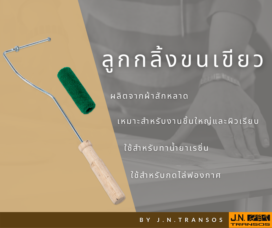- ลูกกลิ้งขนเขียว ผลิตจากผ้าสักหลาด ลักษณะการใช้งานคล้ายกับลูกกลิ้งขนแกะ สามารถใช้ทาเรซิ่น และกดไล่ฟองอากาศบนผิวชิ้นงาน โดยนิยมใช้งานกับชิ้นงานที่มีขนาดใหญ่และผิวเรียบ โดยราคาจะแตกต่างกับลูกกลิ้งขนแกะเล็กน้อย
