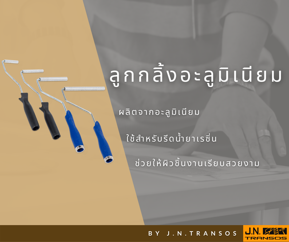 - ลูกกลิ้งอะลูมิเนียม หรือลูกกลิ้งเหล็ก ผลิตจากอะลูมิเนียม มีหลากหลายขนาด ขึ้นอยู่กับขนาดของชิ้นงาน เหมาะสำหรับใช้รีดน้ำยาเรซิ่น เพื่อให้ผิวงานมีความเรียบสวยงาม